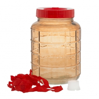 Банка стеклянная с гидрозатвором и пластиковым краном объёмом 5 литров. Изготовлена из экологически чистого стекла, предназначена для хранения и брожения.