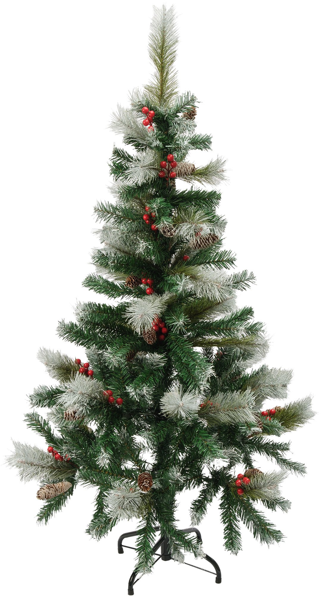 Ель искусственная Морозная 120см d75см, заснеженная, с шишками и ягодами, хвоя 6см: ПВХ, металл.подставка 35см