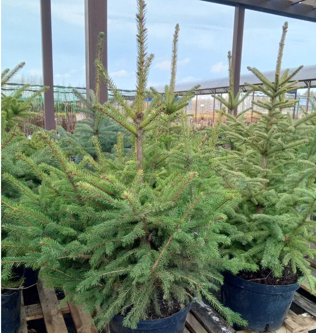 "Дерево правильной конической формы, к 10-ти годам h=400-500 см, шир. 300 см, крона плотная, ветви отрастают от ствола под прямым углом и располагаются правильными ярусами, хвоя зеленовато-голубая, место солнечное, к почве и влаге нетребовательна, подходит для одиночной посадки, для использования в композициях, а также как новогоднее «рождественское» дерево, зона 3 (до -34ºС).