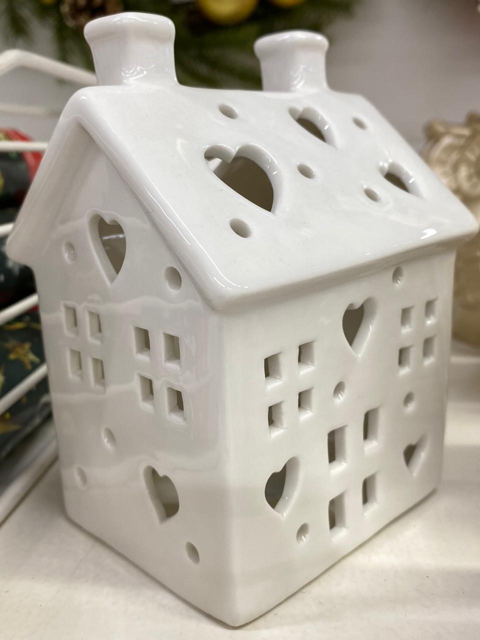 Фигурка керамическая Домик 12,8см, белый, LED-подсветка (+ батарейка 2LR44), SYTCC-3823125