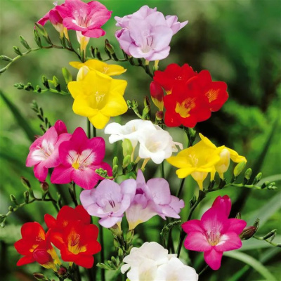 Фрезия простая Смесь окрасок – роскошное, долго цветущее растение, окутывающее воздух незабываемым ароматом.