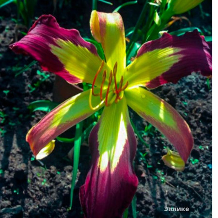 Цветки у данного сорта просто огромные – около 28 см, в высоту он тоже велик – достигает метра. Это многолетнее растение станет ярким фоном для посева других, более нежных культур. Сам сорт имеет лепестки яркой пурпурно-бордовой расцветки в сочетании с желто-зеленой звездой посередине.