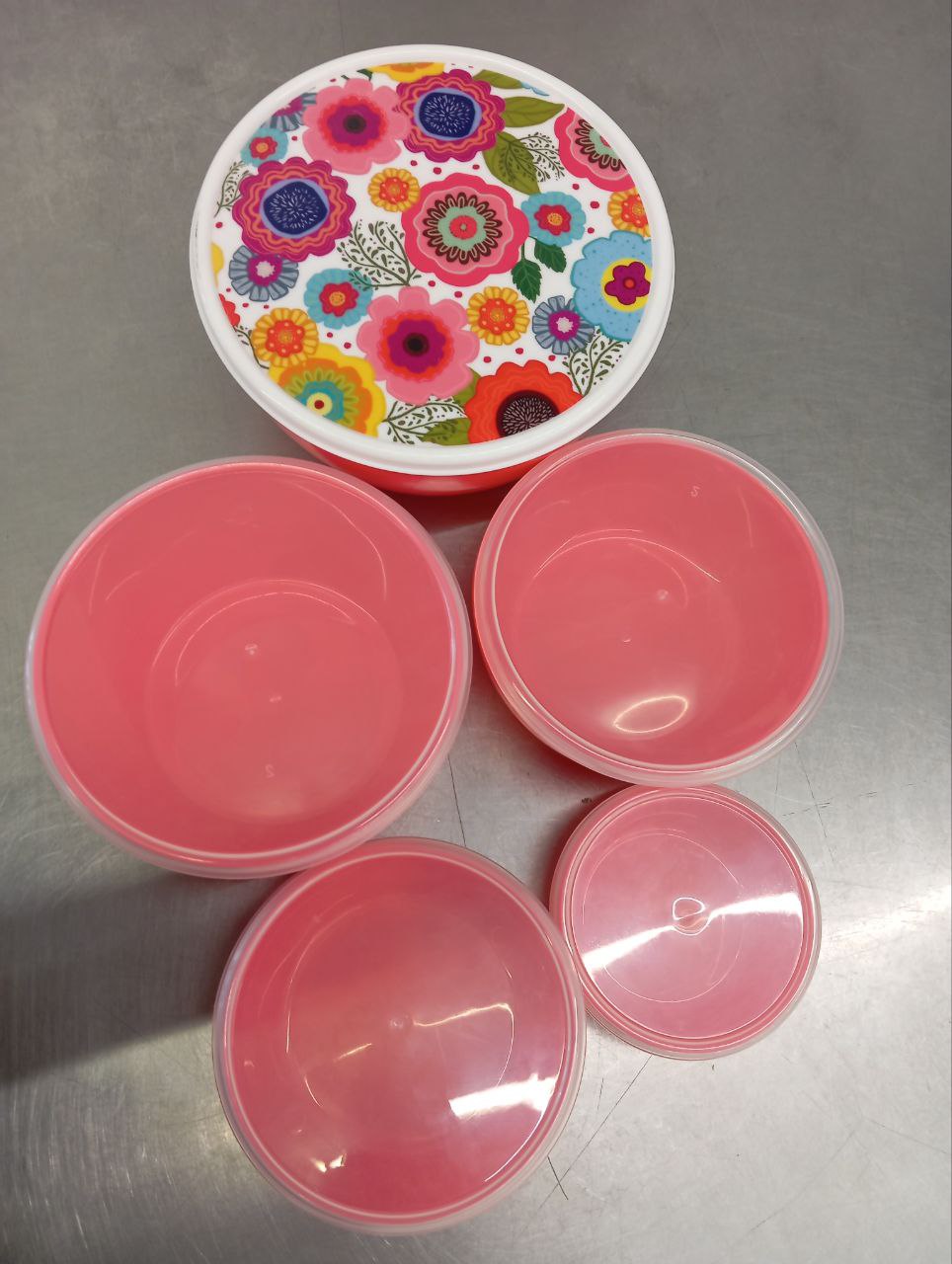 Набор из 5 мисок с крышками из полипропилена. Миски предназначены для: хранения, заморозки и транспортировки блюд. Вкладываются одна в другую, обеспечивая компактность в хранении. Можно использовать в СВЧ и посудомоечной машине.