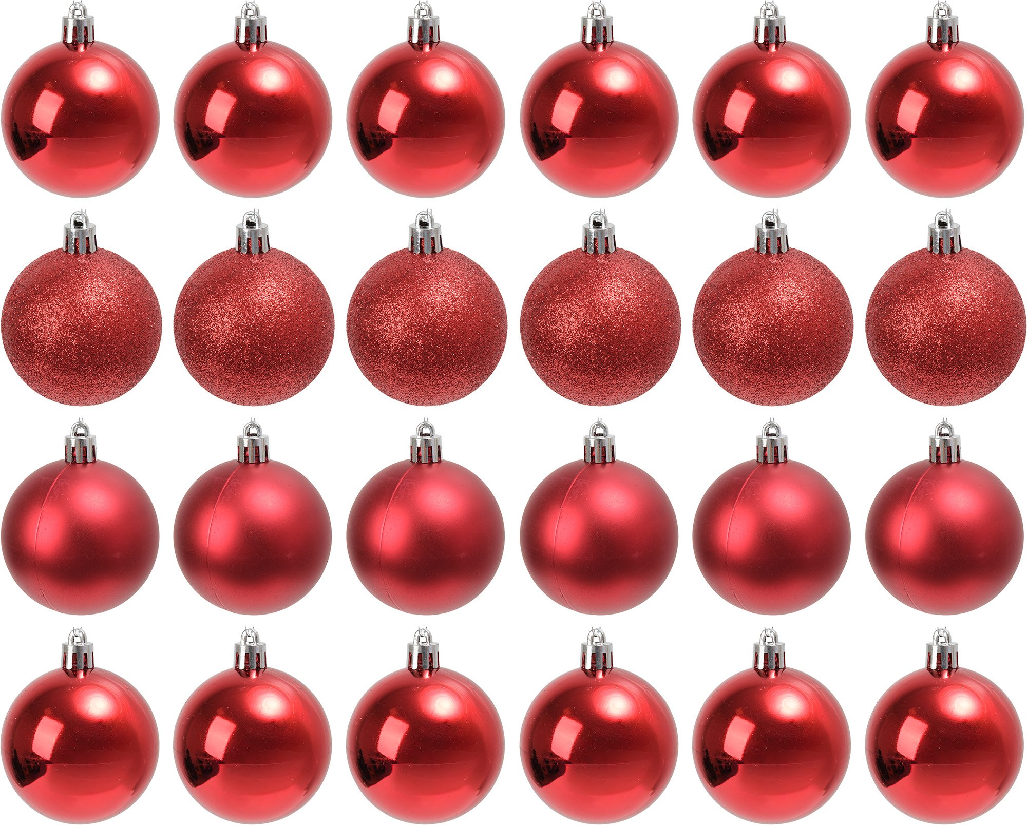 Набор шаров 24шт 6см красный (глянец: 12шт, матовые: 6шт, глиттер: 6шт) JNPM25-02-R