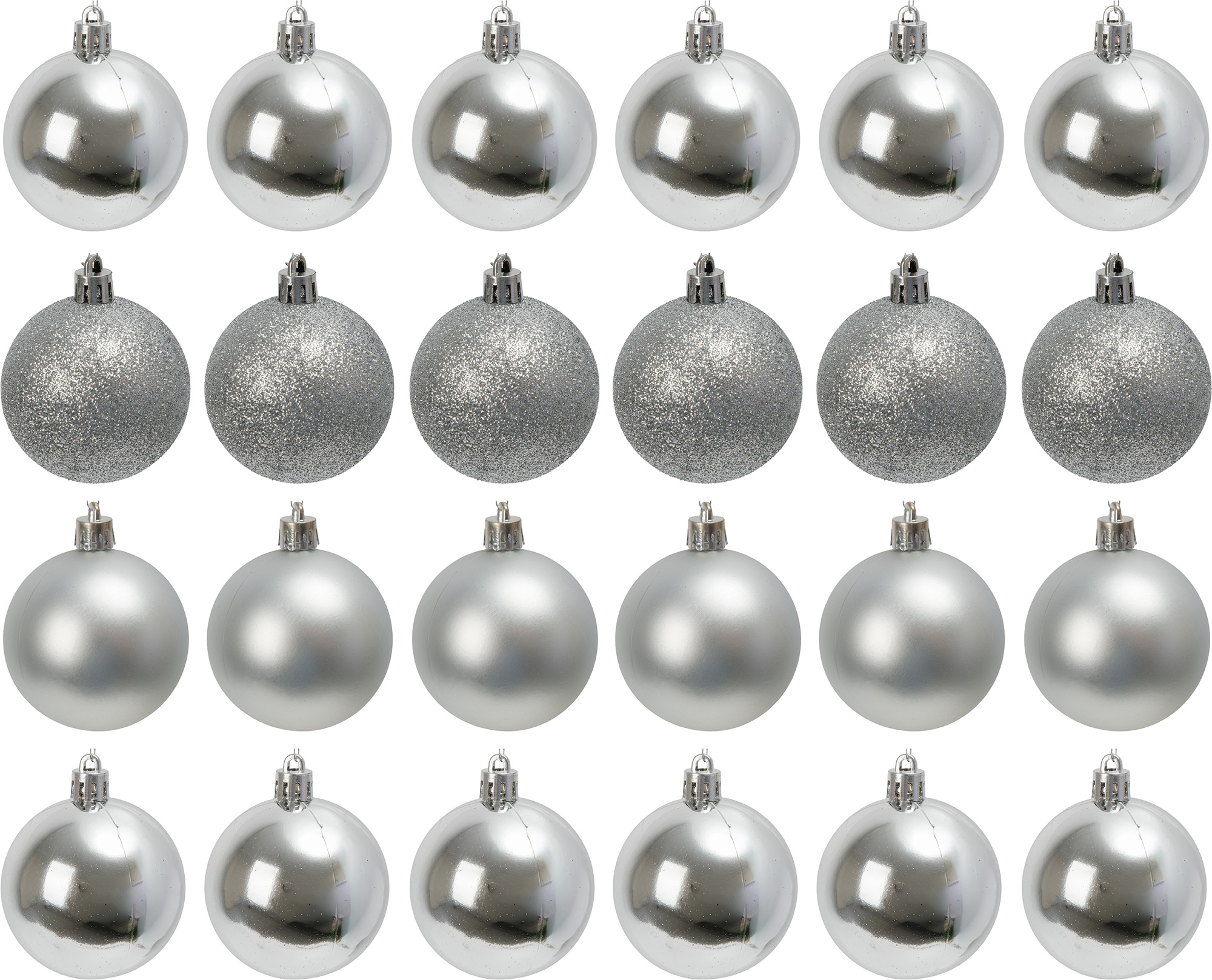 Набор шаров 24шт 6см серебро (глянец: 12шт, матовые: 6шт, глиттер: 6шт) JNPM25-02-S