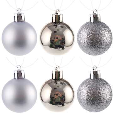 Набор шаров 6шт 4см, серебро (глянец: 2шт, матовые: 2шт, глиттер: 2шт), SYQA-0123121-5