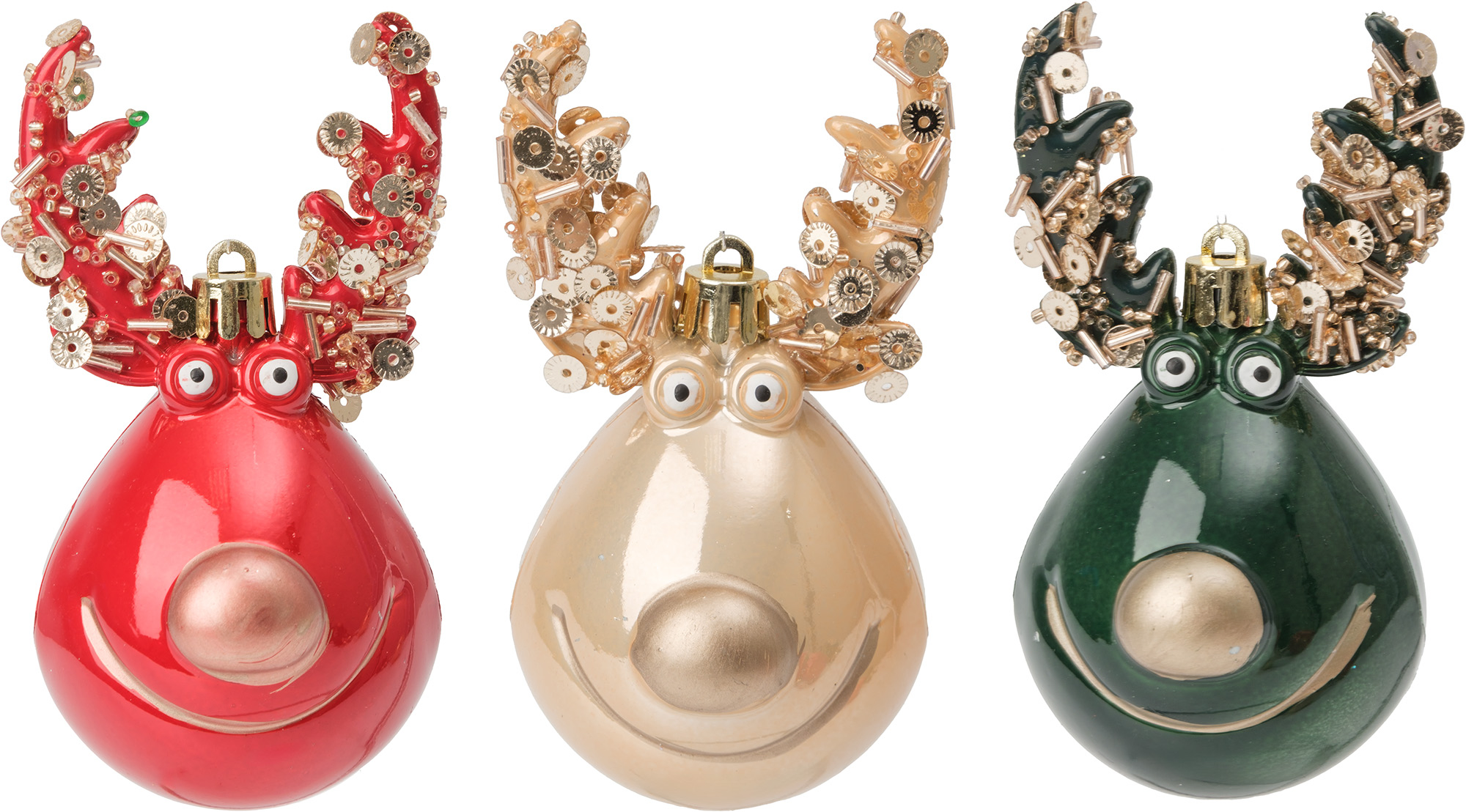 Набор украшений Олени 3шт 11,5х5,5см красный+зеленый+шампань, SYQD1-0124019