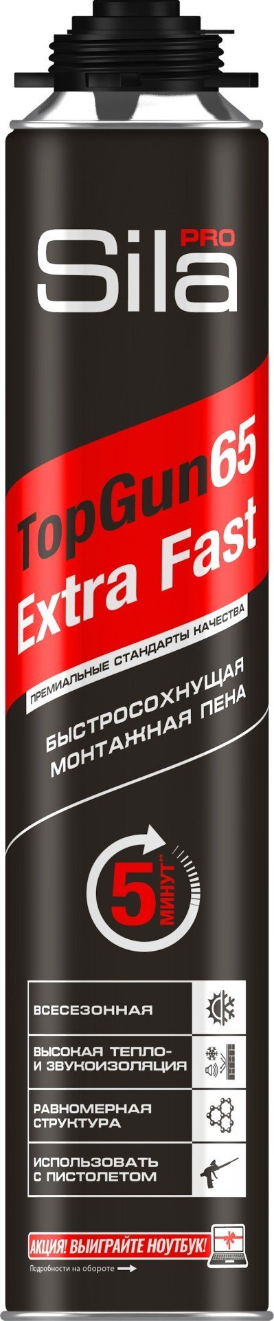 Пена монтажная профессиональная Sila Pro TopGun 65 Extra Fast быстросохнущая (850мл)