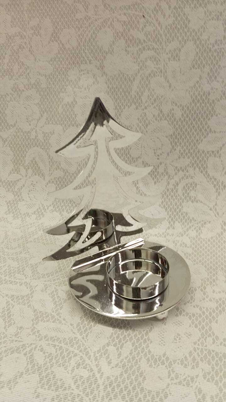 Подсвечник декоративный Елочка 10,5х7х13см, цвет: серебро, металл, SYTYB-1823040