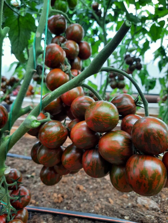 Продуктивный сорт с нарядными плодами. Растение среднерослое, детерминантное (с ограниченным ростом), обильно усыпано коктейльными полосатыми томатами красно-коричневого цвета, массой 30-40 г. Среднерослые сорта удобны своей универсальностью: они обильно плодоносят в открытом грунте (с подвязкой к кольям), в защищенном — хорошо используют объем теплицы для получения высокого урожая. Плоды плотные, вкусные, при консервировании хорошо держат форму, упругие — идеальная закуска в свежем и соленом виде. Посев на рассаду в марте-апреле на глубину 1-2 см. Пикировка в фазе 2-3 настоящих листьев. Посадка рассады в теплицу в апреле-мае, в грунт - в июне. После высадки в открытый грунт растения подвязывают и пасынкуют. Схема посадки: 40x60 см.