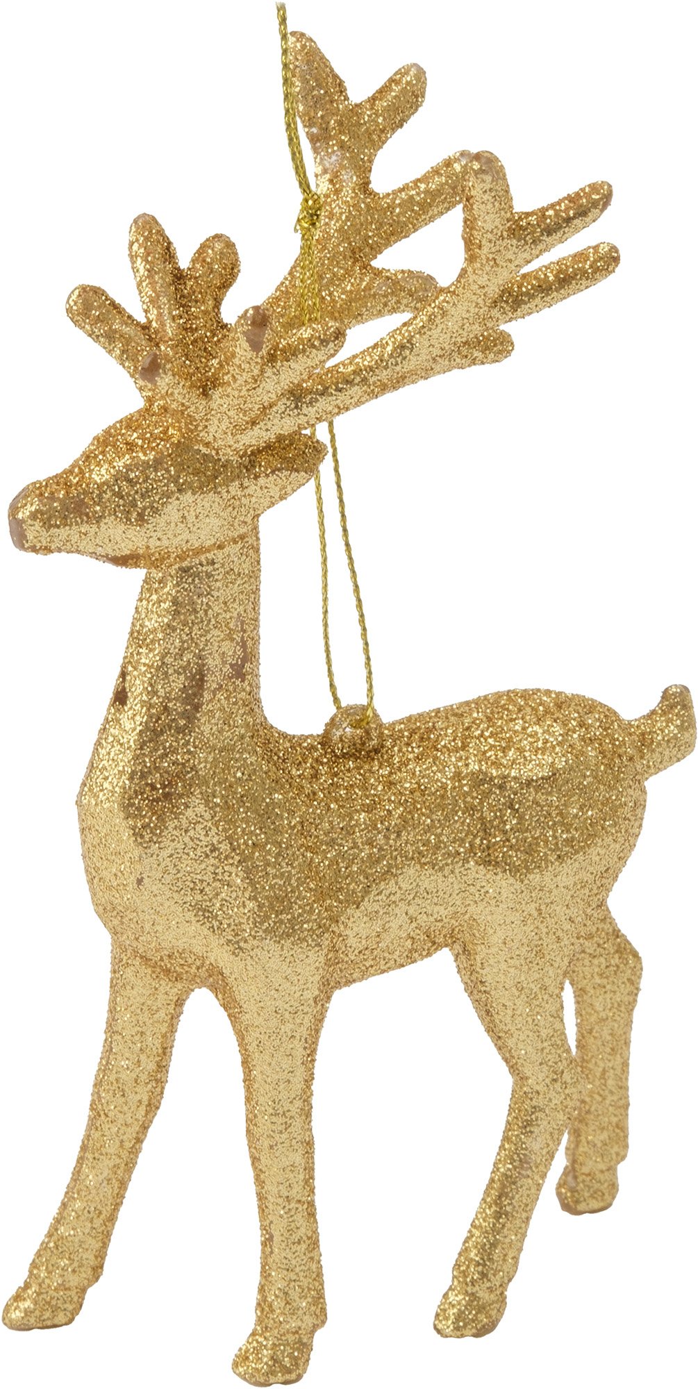 Украшение выполнено в виде очаровательного оленя, который станет прекрасным дополнением к новогоднему декору вашей ёлки или комнаты. Акрил с золотым покрытием придаёт украшению роскошный вид, делая его идеальным для любого интерьера.