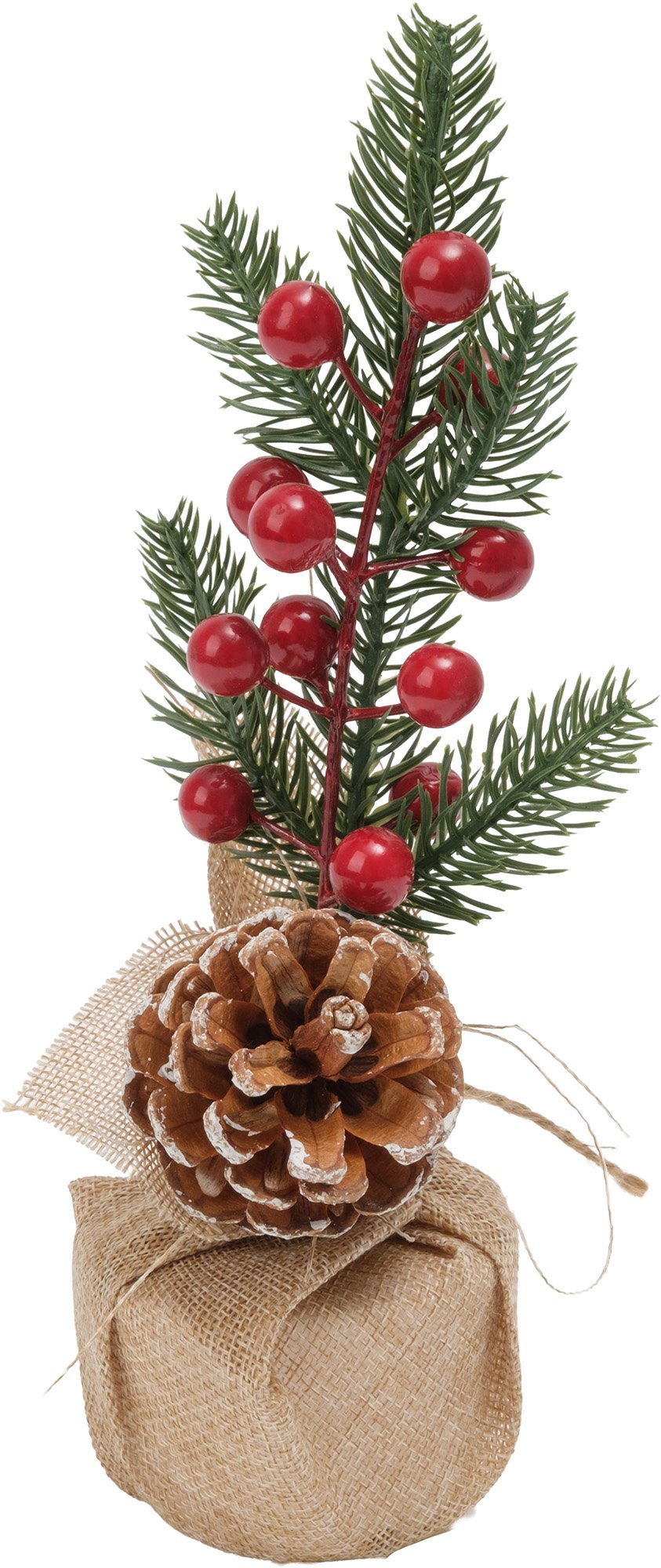 Украшение настольное 20см с сосновой шишкой и красными ягодами ПЭ SYSPS-0925365