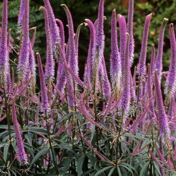 Высота до 150 см. Куст стройный с ланцетными листьями, собранными в мутовки. Соцветия стреловидные метельчатые, лилово-сиреневые. Цветет с июля по сентябрь. Для солнечных и полутенистых мест с влагоемкими, гумусированными почвами.