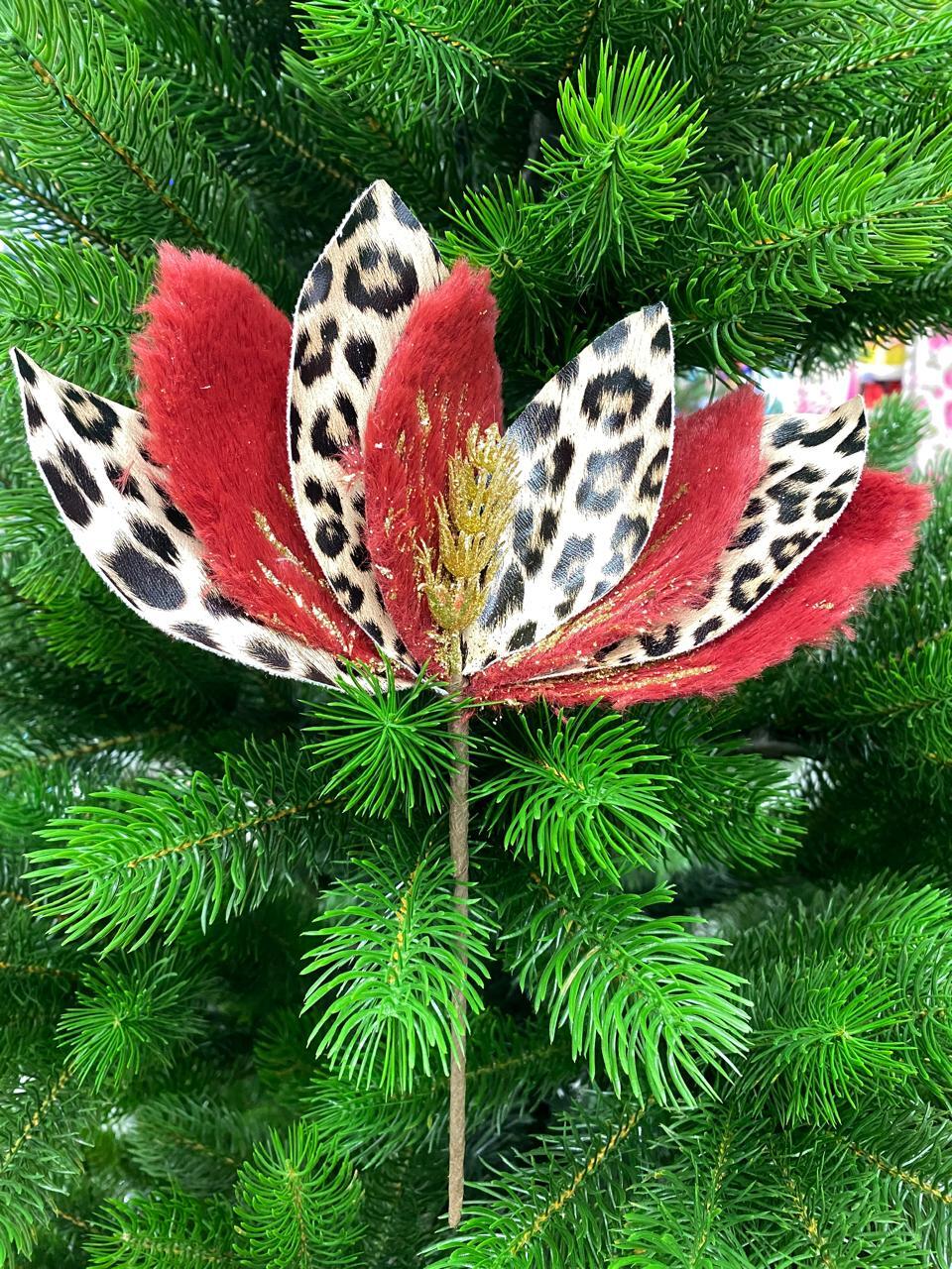 Ветка декоративная 23см леопардовая с красным SYCZB-382131