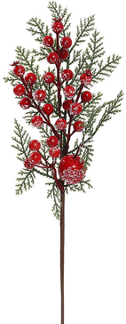 Ветка декоративная Красные ягоды 40см серебро SYCZA-1025014